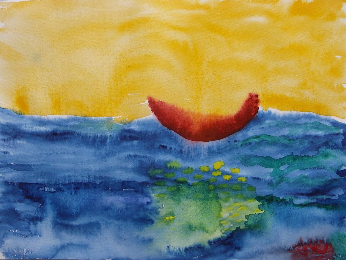 Stell dir vor, du hast ein bestimmtes Problem oder Thema, z. B. Angst vor der Geburt. Dazu gestaltest du ein intuitiv Bild oder wir machen eine Imagination (das ist das Hervorrufen innerer Bilder) Das Thema erarbeiten wir vorher. Es könnte z.B. sein „Was brauche ich, um sicher und gelassen in die Geburt zu gehen?“ Nun passiert folgendes.